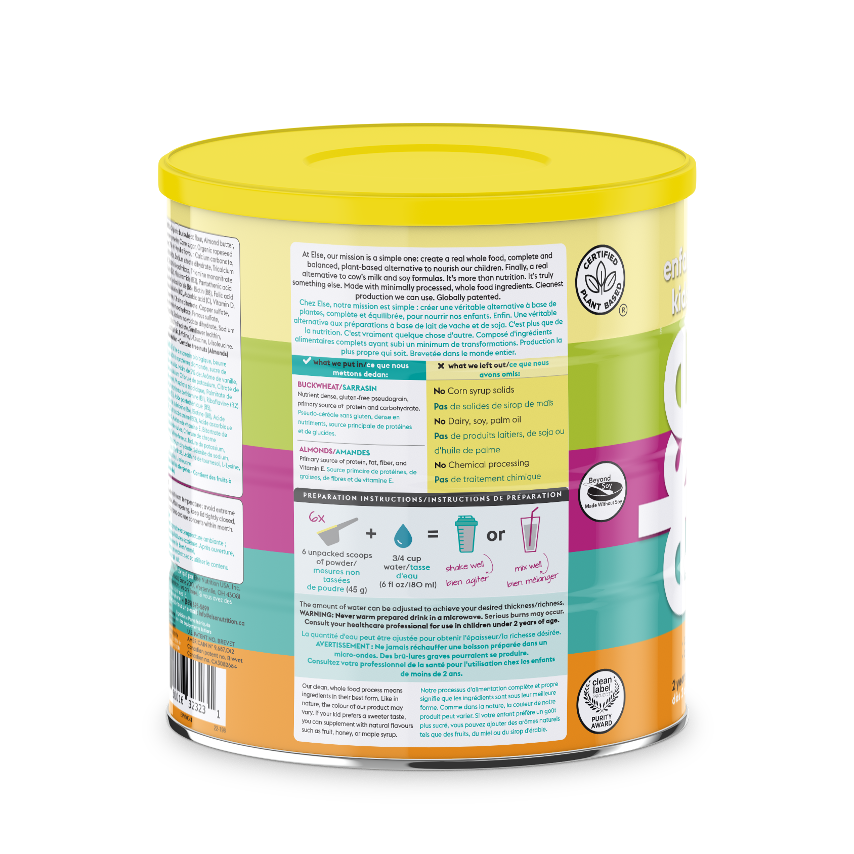 - Else™ Kids is made of minimally processed, whole-food ingredients: almonds and buckwheat, in the cleanest production we can use. packed with: plant-based protein, gluten-free carbs, unsaturated fats, and over 20 essential micronutrients kids need. It’s clean fuel for growth.